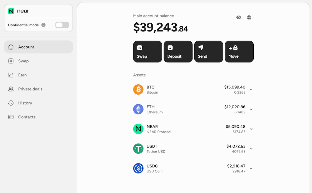 Sign inTrade, access yield, and go confidential — across 35+ networks, from a single near.com account. Powered by NEAR.