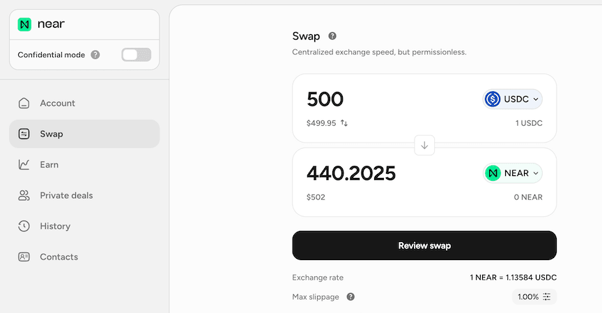 Sign inTrade, access yield, and go confidential — across 35+ networks, from a single near.com account. Powered by NEAR.